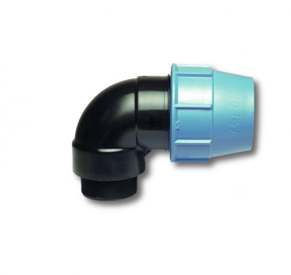 Kolano PE 40 należy do systemu złączek skręcanych, który został zaprojektowany do połączeń w instalacjach zawierających płyny pod niskim i wysokim ciśnieniem PN 16, wodę, wodę użytkową do celów spożywczych oraz dla cieczy w pozostałych obszarach zastosowań termo-hydraulicznych.